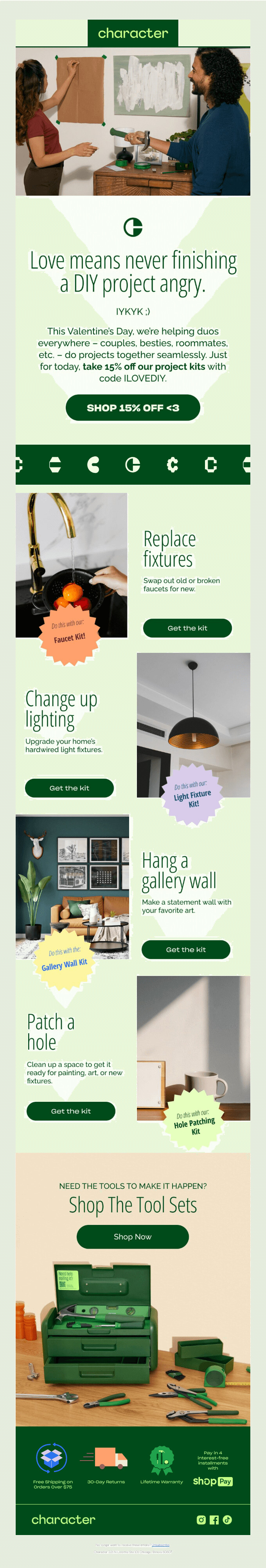 También puedes usar San Valentín para hablar de algo más que el amor romántico y conectarlo directamente con lo que ofreces. Piensa en las relaciones que tu producto o servicio ya apoya y construye el email en torno a eso.