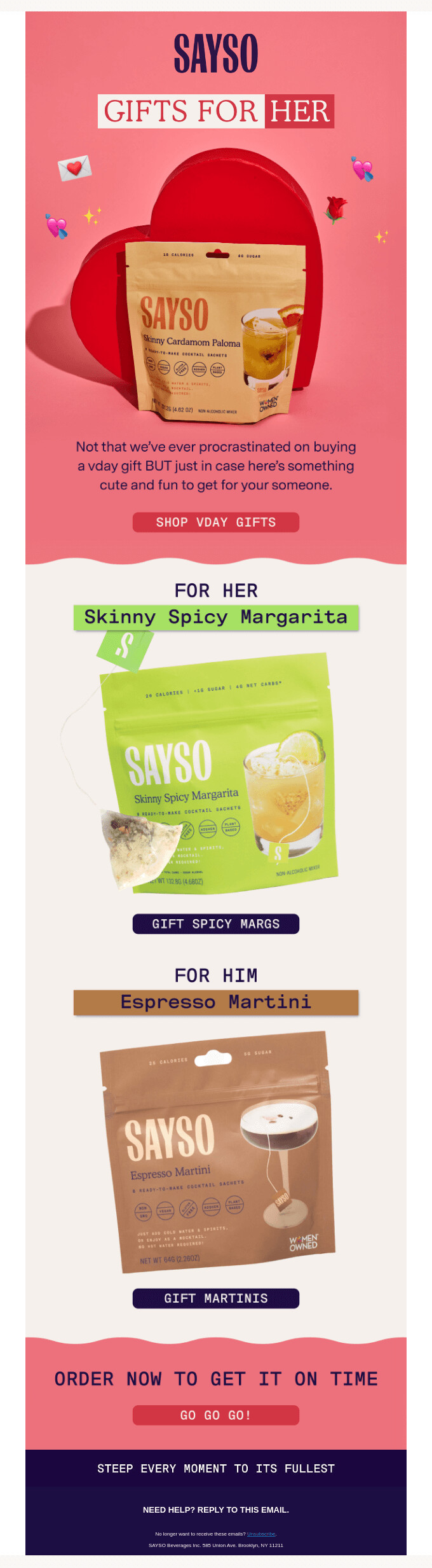 En torno a San Valentín, muchas personas ya están buscando ideas: regalos, experiencias o pequeños caprichos para ellas mismas. No todo el mundo comprará, pero suficientes suscriptores estarán en modo “¿por qué no?” como para que un email bien enviado se traduzca en ventas.