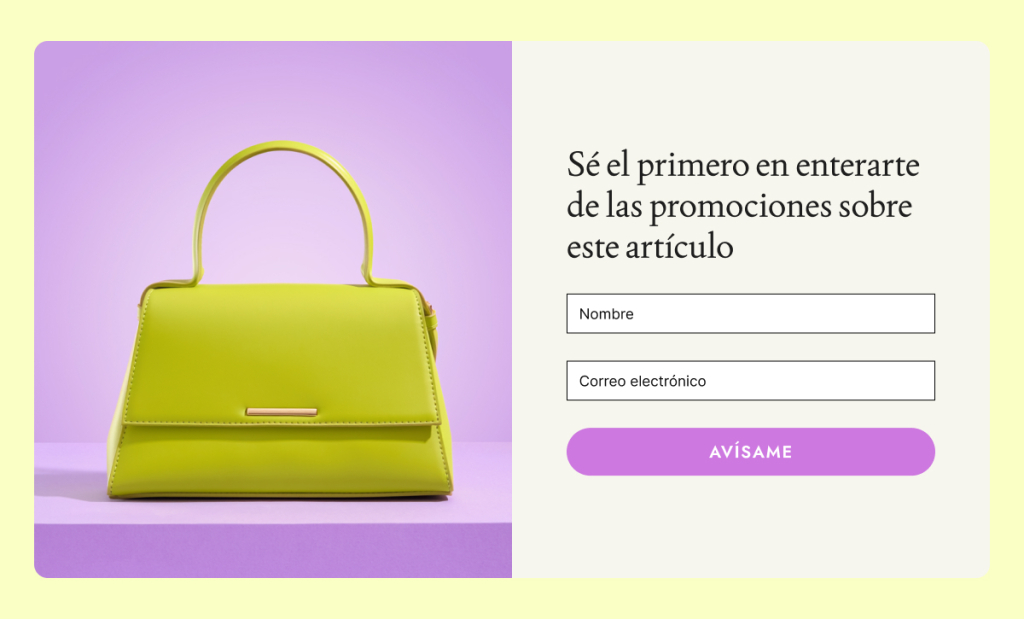 Si vendes servicios: en lugar de productos, puedes adaptar la misma idea como una lista de espera para servicios completos o nuevos eventos (consulta la sección de listas de espera a continuación).