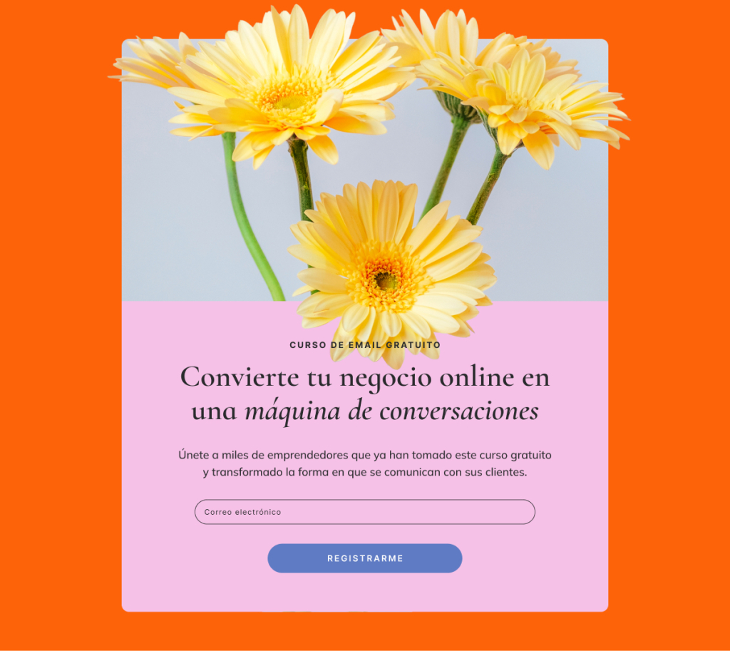Un formulario de suscripción por email es un pequeño formulario en tu web o redes sociales donde las personas introducen su email para unirse a tu lista o newsletter. Cuando lo completan y hacen clic en enviar, te dan permiso para enviarles emails sobre tu negocio.